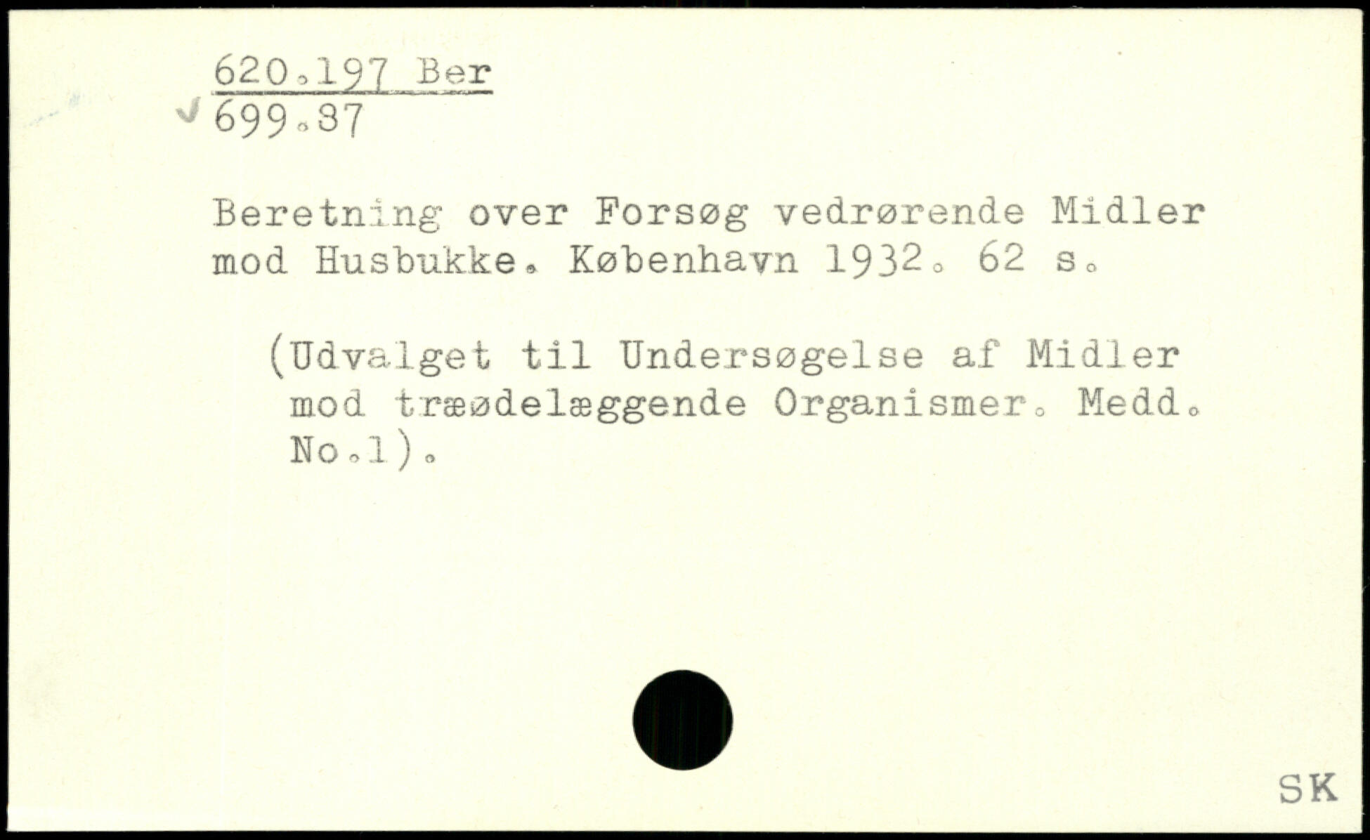 Beretning over Forsøg vedrørende Midler mod Husbukke.