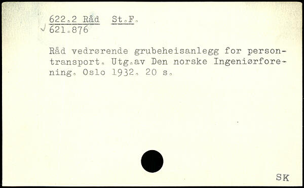 Råd vedrørende grubeheisanlegg for persontransporto Utgoav Den norske Ingeniørfore- ning, Oslo 1932