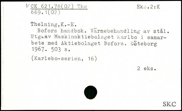 Bofors handbok. Varmebehandling av stål. Utgaav Maskinaktiebolaget karlbo i samarbete med Aktiebolaget Bofors. Goteborg 1967.