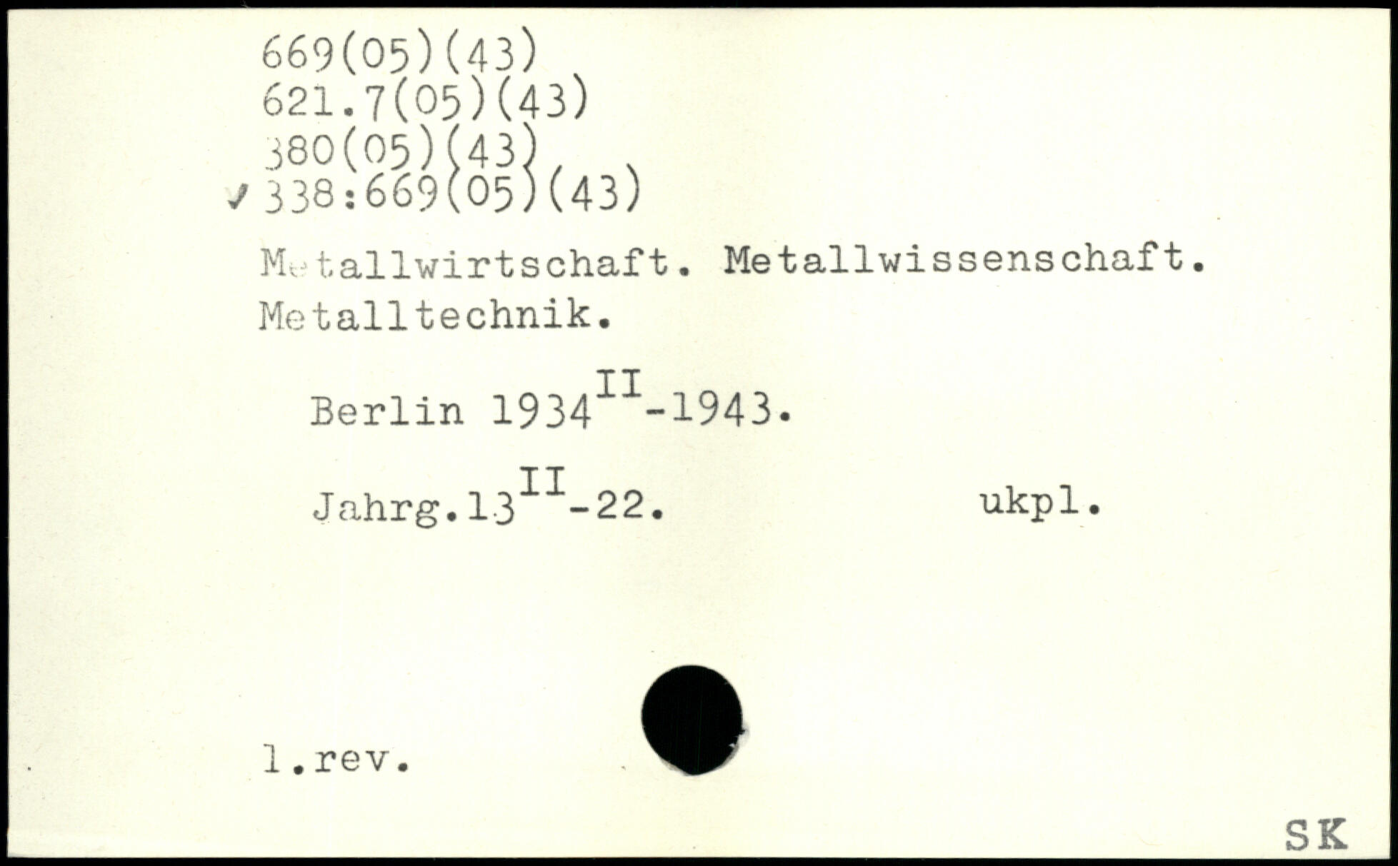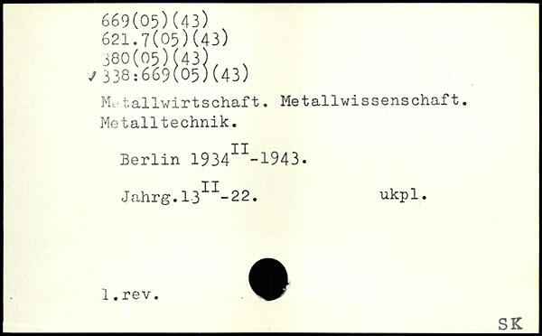Metallwirtschaft. Metallwissenschaft. Metalltechnik.