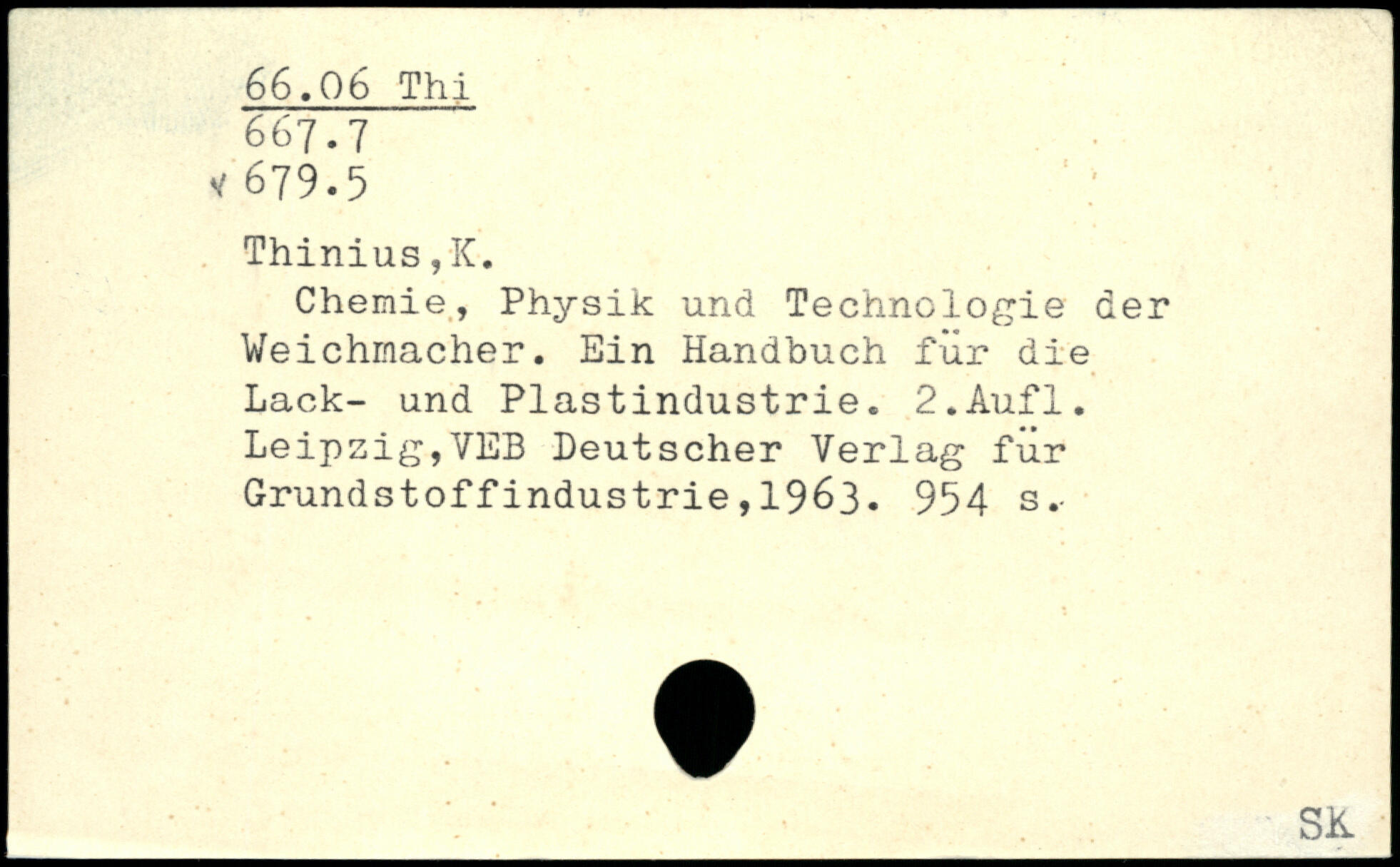 Chemie, Physik und Technologie der Weichmacher. Ein Handbuch für die Lack- und Plastindustrie.