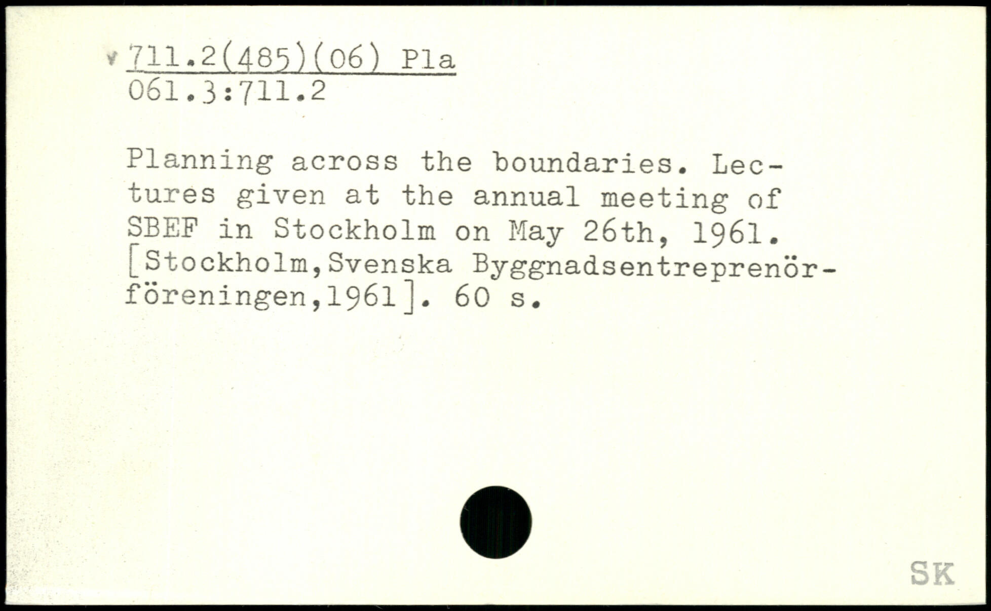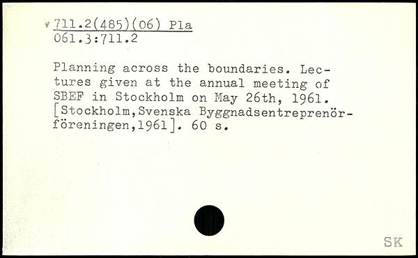 Planning across the boundaries. Lectures given at the annual meeting of SBEF in Stockholm on May 26th, 1961.