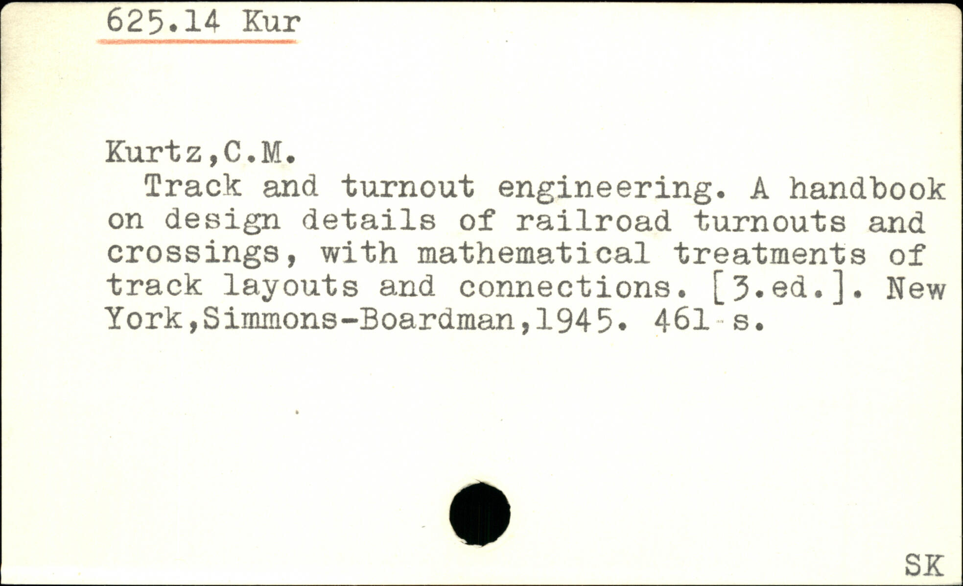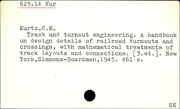 Track and turnout engineering. A handbook on design details of railroad turnouts and crossings, with mathematical treatments of track layouts and connections. [