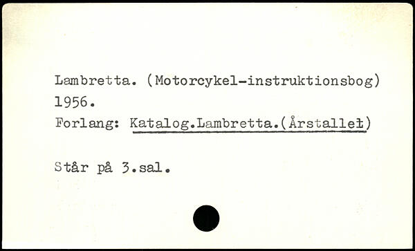 Lambretta. (Motorcykel-instruktionsbog) 1956. Forlang: Katalog.Lambretta.(Årstallet) Står på 3.sal.