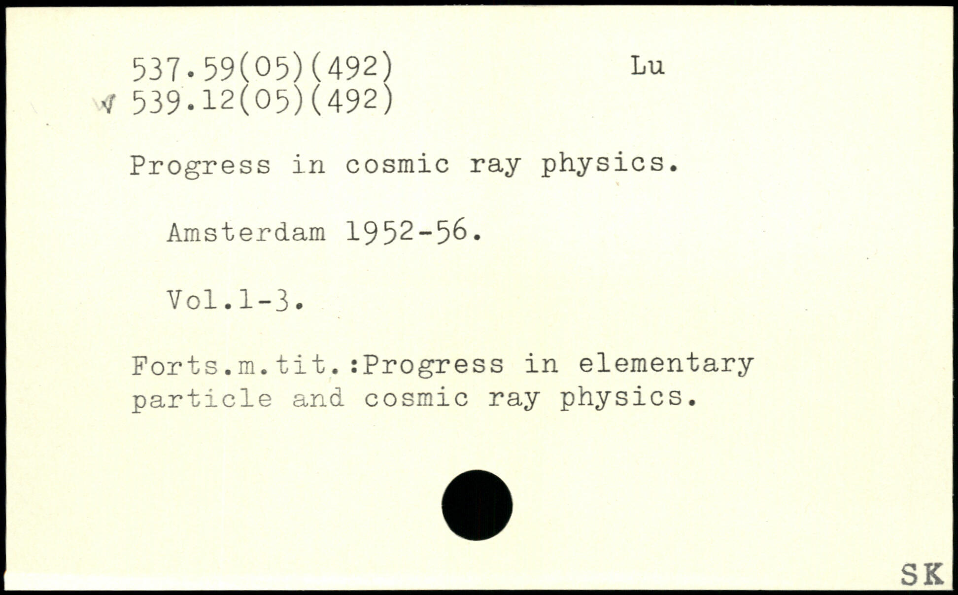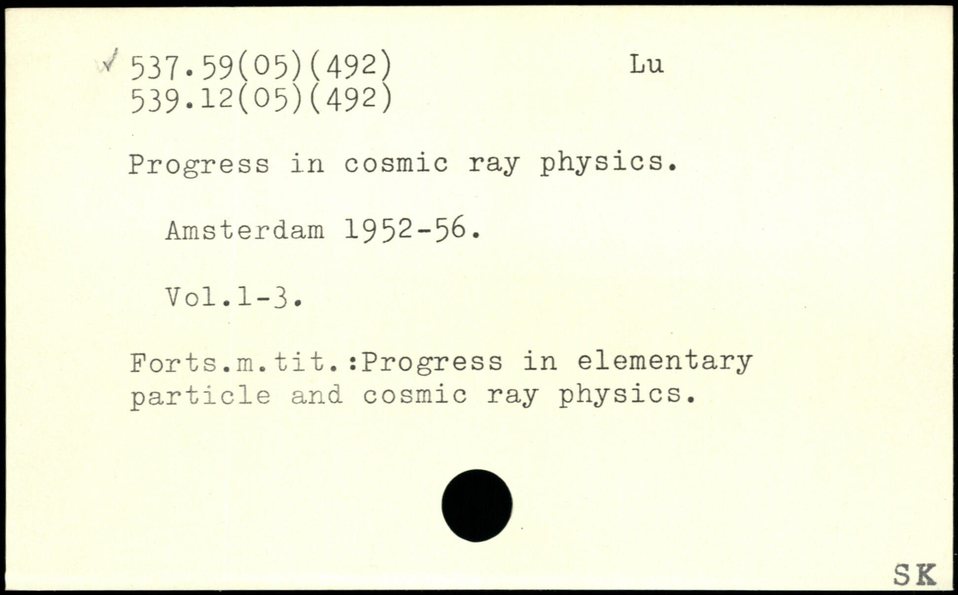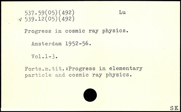 Progress in cosmic ray physics. Amsterdam 1952-56.