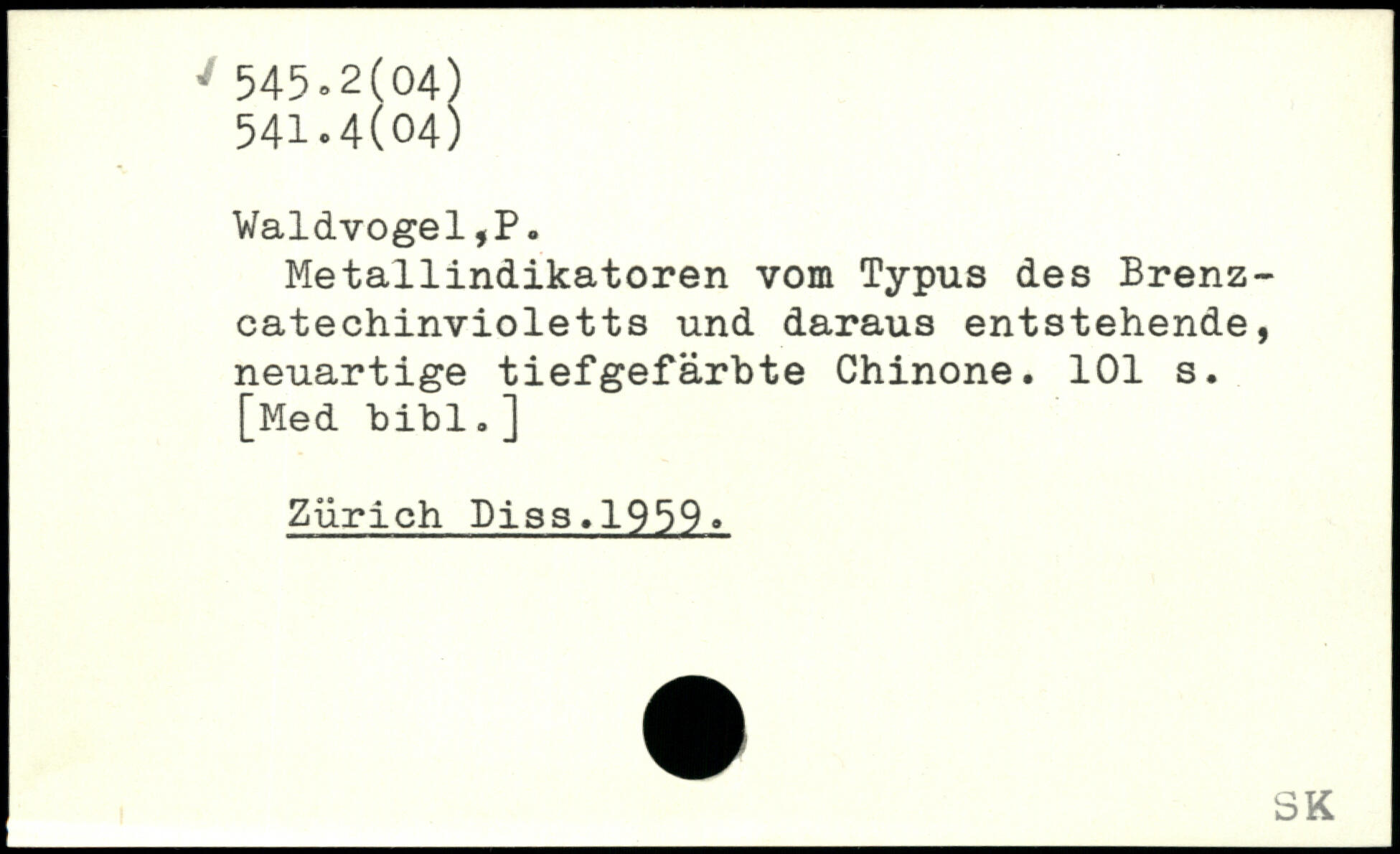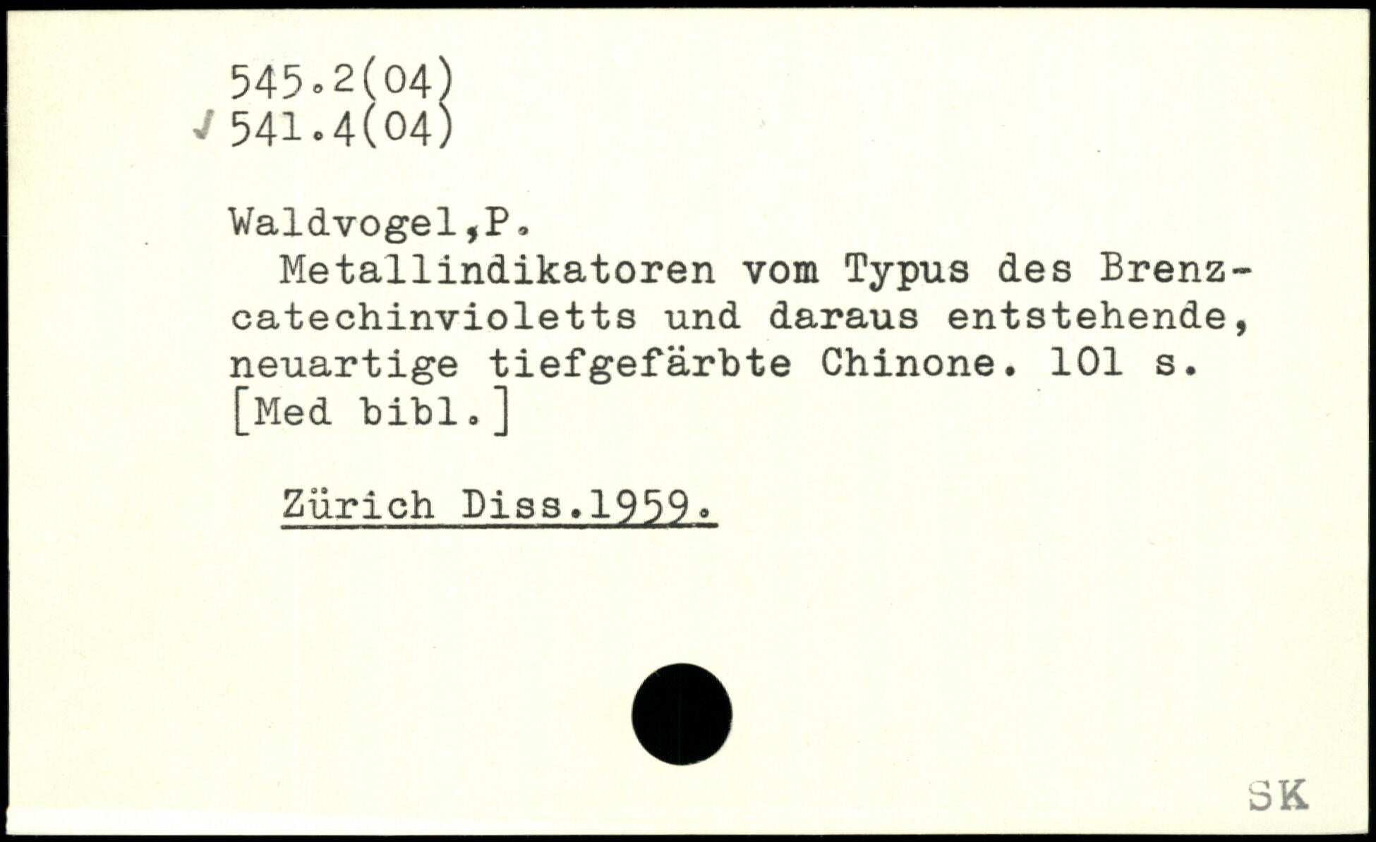 Metallindikatoren vom Typus des Brenzcatechinvioletts und daraus entstehende, neuartige tiefgefärbte Chinone.