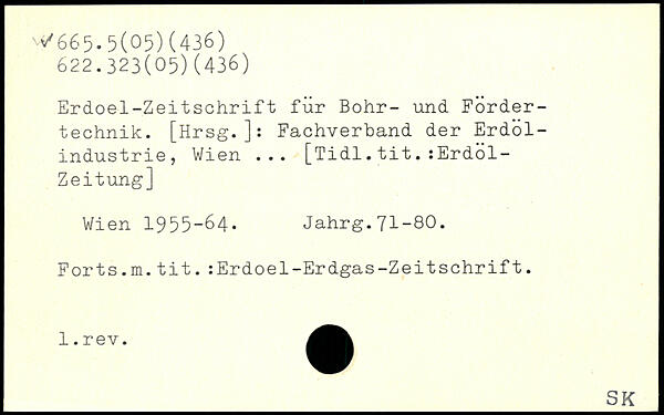 Erdoel-Zeitschrift für Bohr- und Fbrder-technik. [Hrsg.]: Fachverband der Erdölindustrie, Wien ... [Tidl.tit.:Erdol-Zeitung]