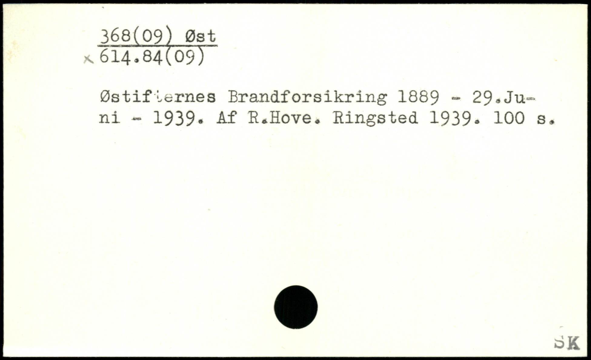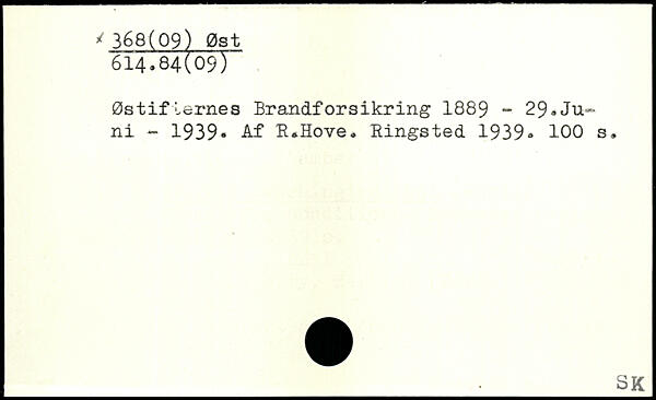 Østifternes Brandforsikring 1889 - 29,Juni - 1939, Af R.Hove. Ringsted 1939.