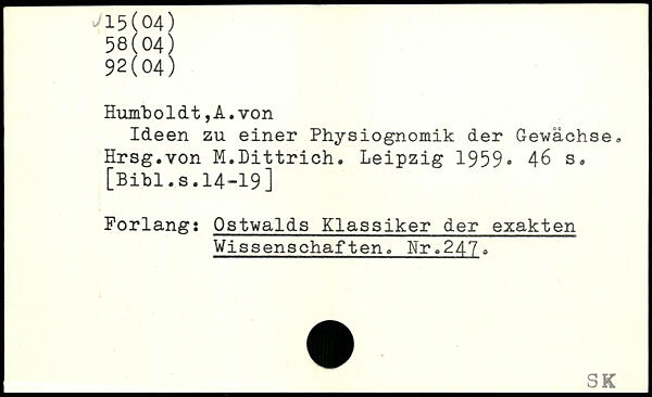 Ideen zu einer Physiognomik der Gewächse,, Hrsg.von M.Dittrich.