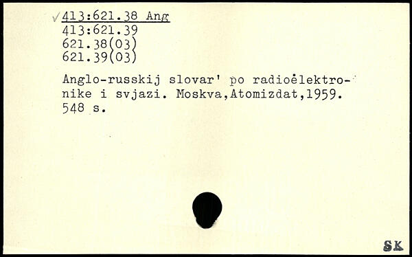 Anglo-russkij slovar. po radioélektro-nike i svjazi.