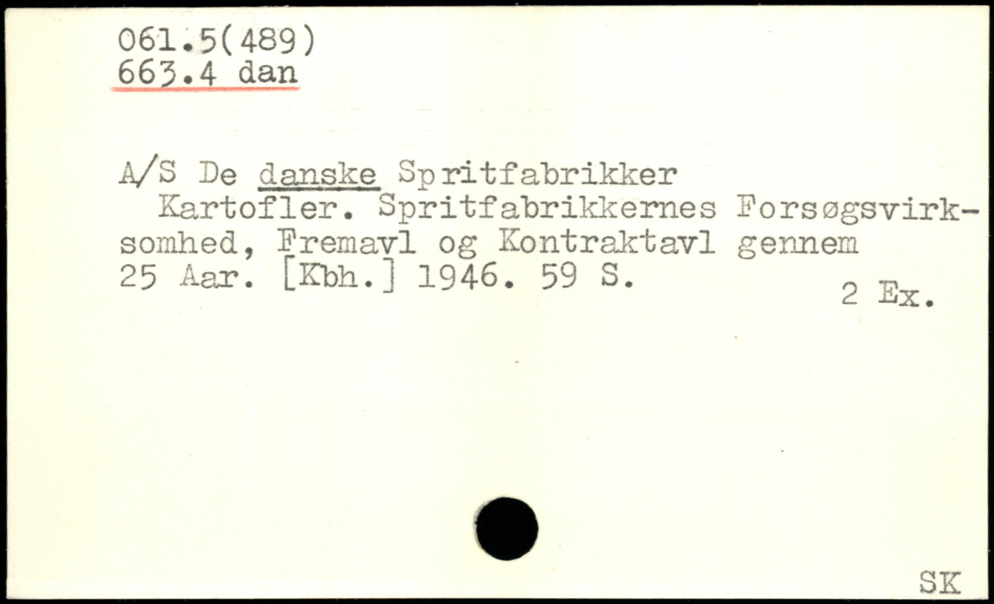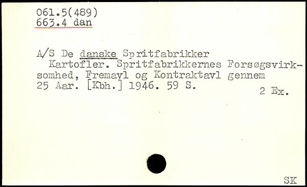 k/S De danske Spritfabrikker Kartofler. Spritfabrikkernes forsøgsvirksomhed, fremavl og Kontraktavl gennem 25 Aar. [Kbh.] 1946.