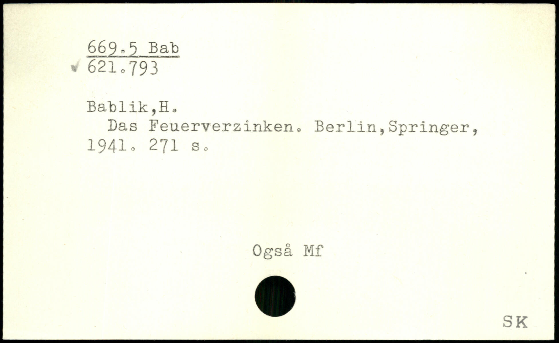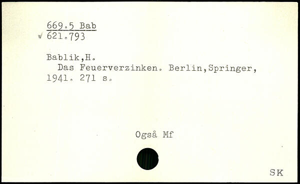 Bas Feuerverzinken, Berlin,Springer, 1941, 271 So Også Mf