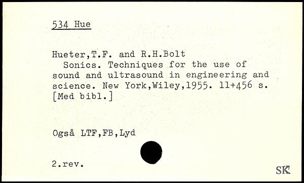 Sonics. Techniques for the use of sound and ultrasound in engineering and science.