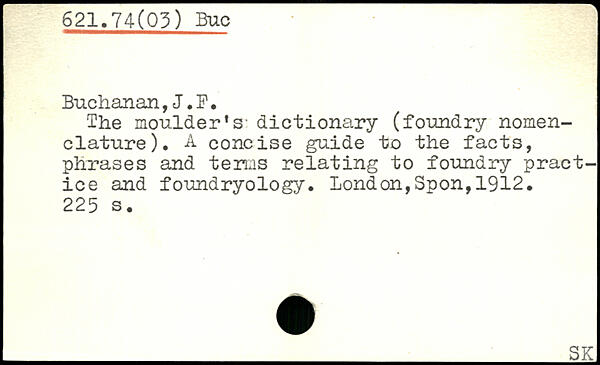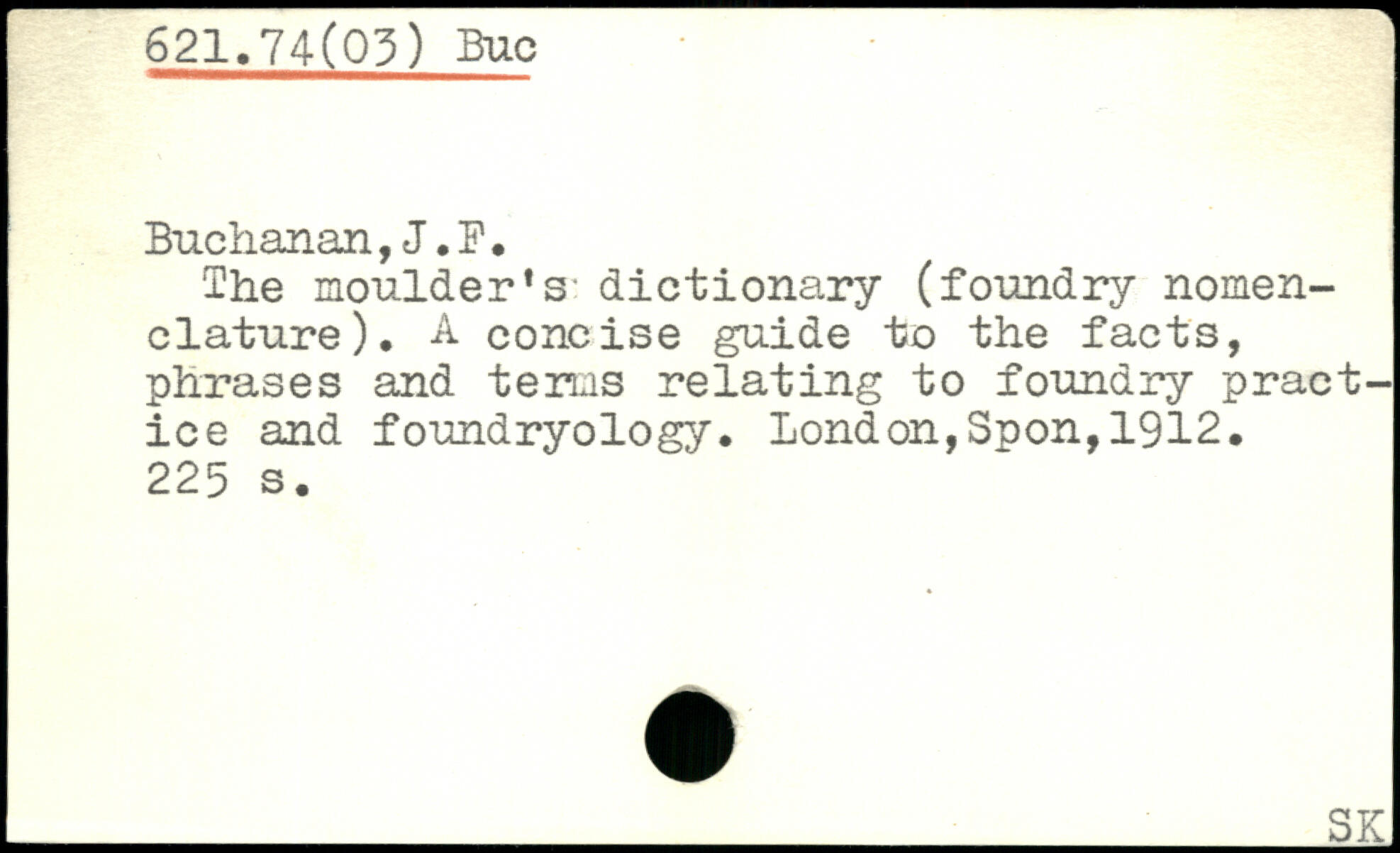 The moulder's- dictionary (foundry nomenclature). A concise guide to the facts, phrases and terms relating to foundry practice and foundryology.