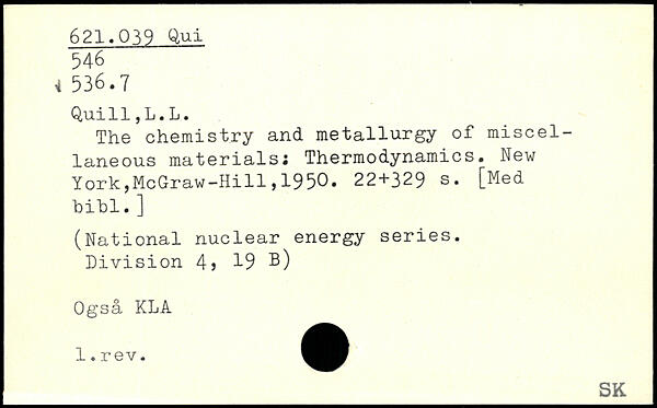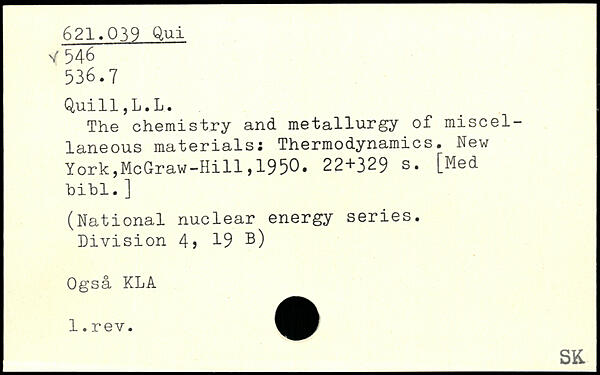 The chemistry and metallurgy of miscellaneous materials; Thermodynamics.