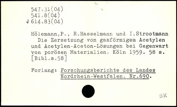 Hölemann?Po? RoHasselmann und loStrootmann Die Zersetzung von gasförmigem Acetylen und Acetylen-Aceton-LÖsungen bei Gegenwart von porösen Materialieno
