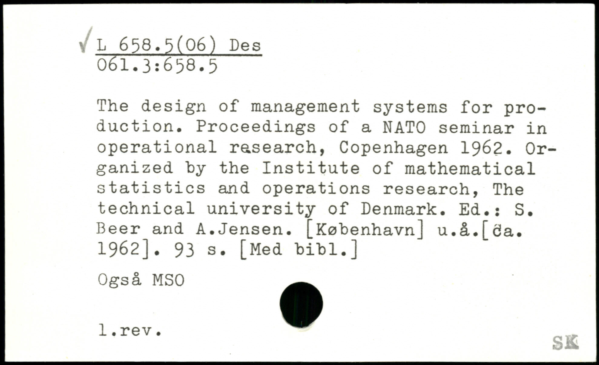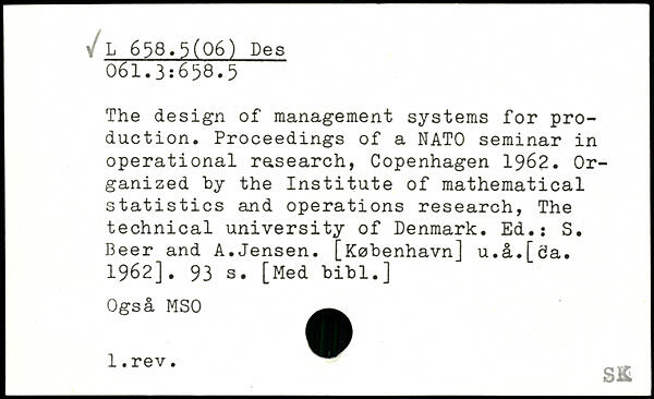 The design of management systems for production. Proceedings of a NATO seminar in operational research