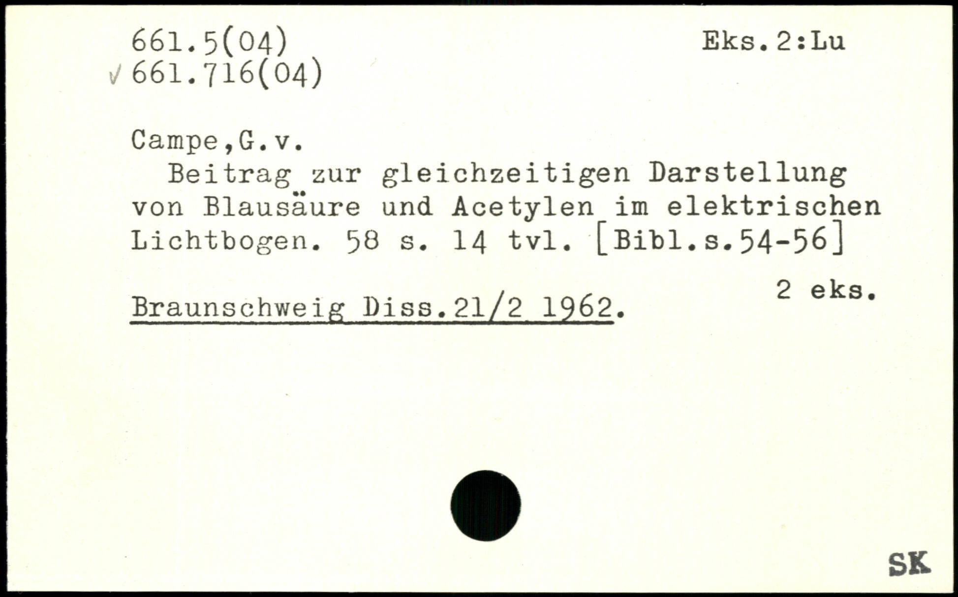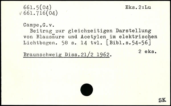 Beitrag zur gleichzeitigen Darstellung von Blausäure und Acetylen im elektrischen Lichtbogen.