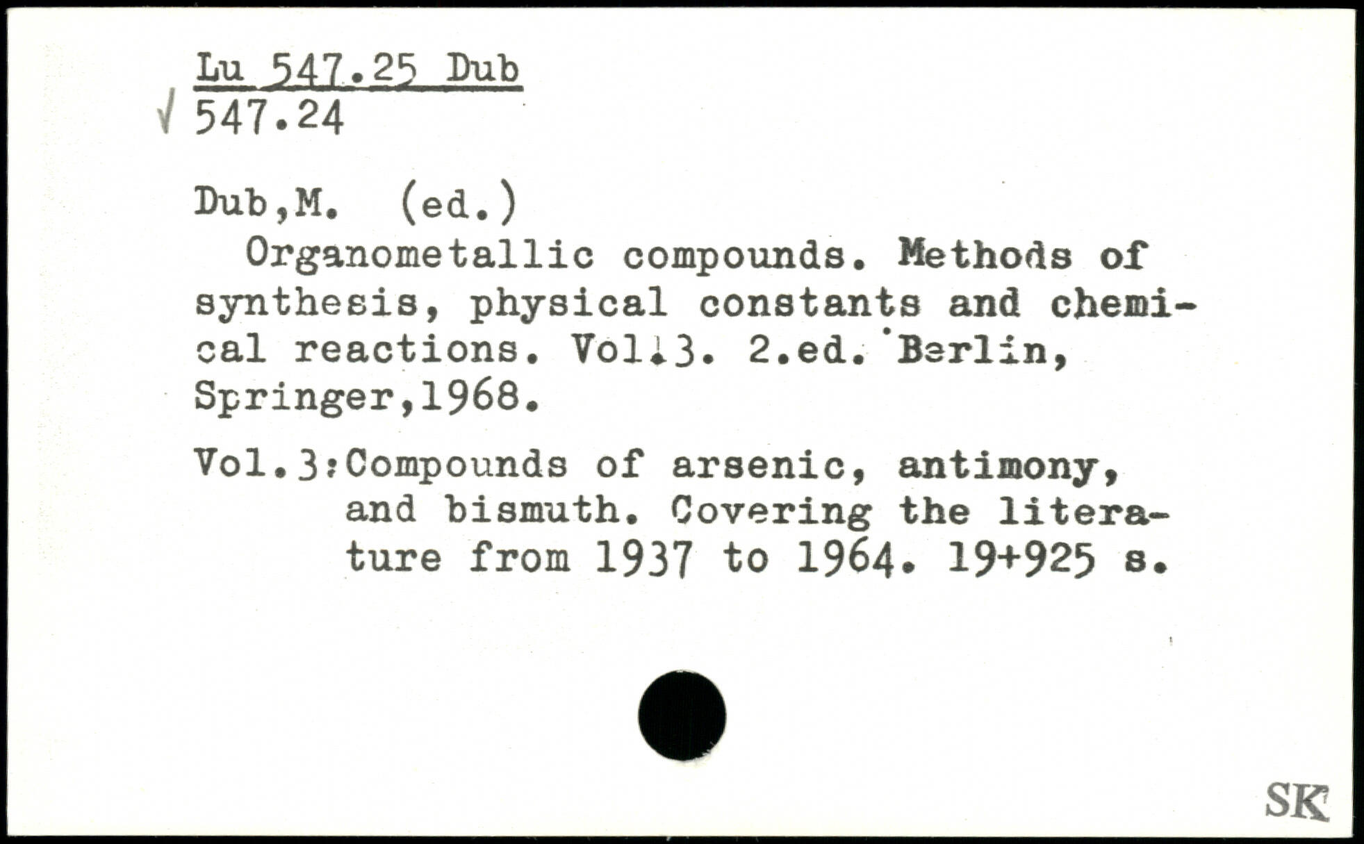 Organernetallic compounds. Methods of synthesis, physical constants and chemical reactions. Voli3.