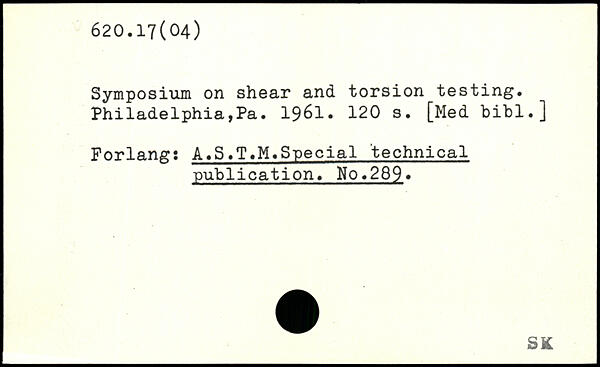Symposium on shear and torsion testing. Philadelphia,Pa. 1961.