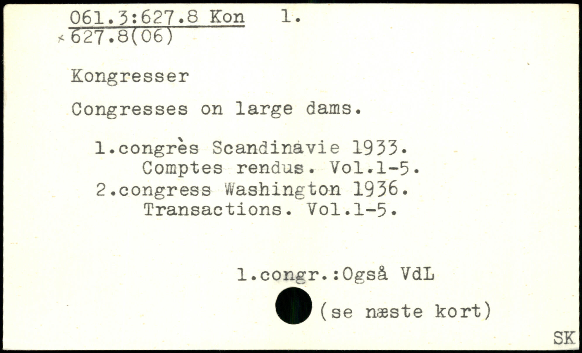 Congresses on large dams. 1. congrès Scandinavie 1933. Comptes rendus.