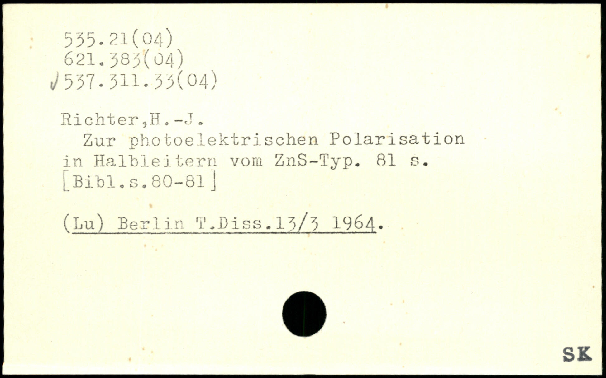 Zur photoelektrischen Polarisation i in Halbleitern vom ZnS-Typ. Bl s.