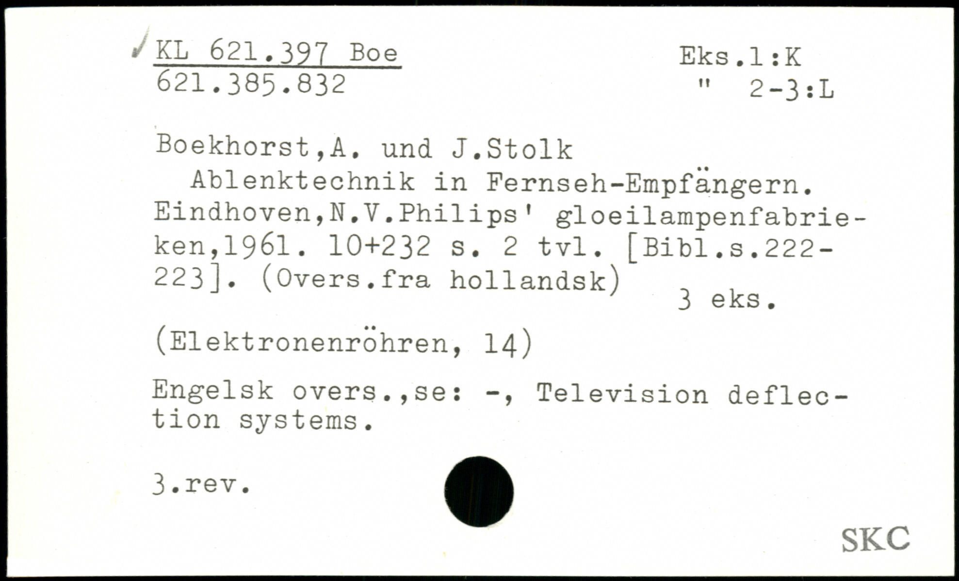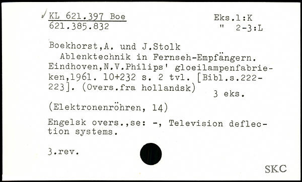 Ablenktechnik in Fernseh-Empfangern. Eindhoven,N.V.Philips' gloeilampenfabrie-ken,1961.