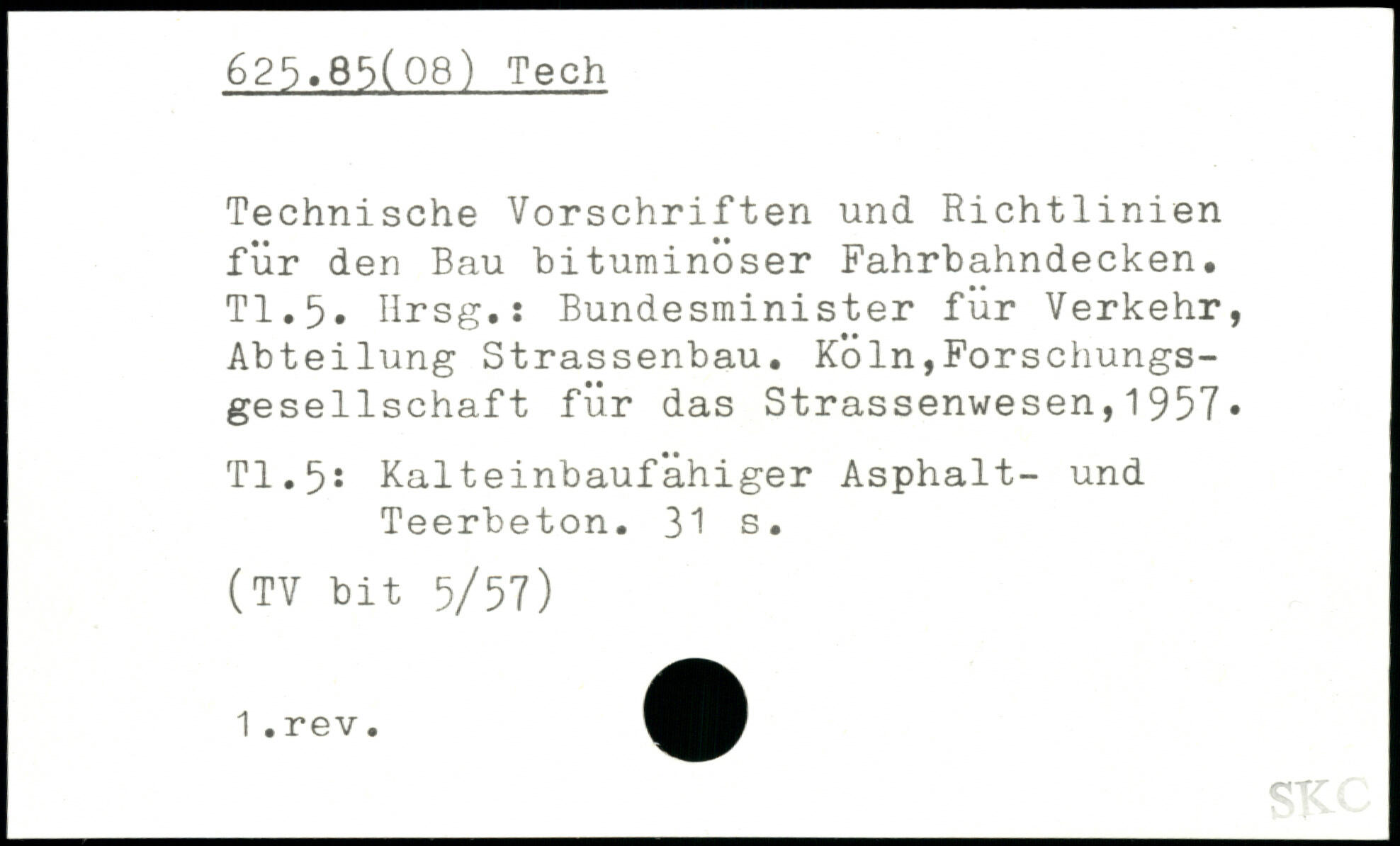 Technische Vorschriften und Richtlinien für den Bau bituminöser Fahrbahndecken. TI.5. Hrsg.: Bundesminister für Verkehr, Abteilung Strassenbau.