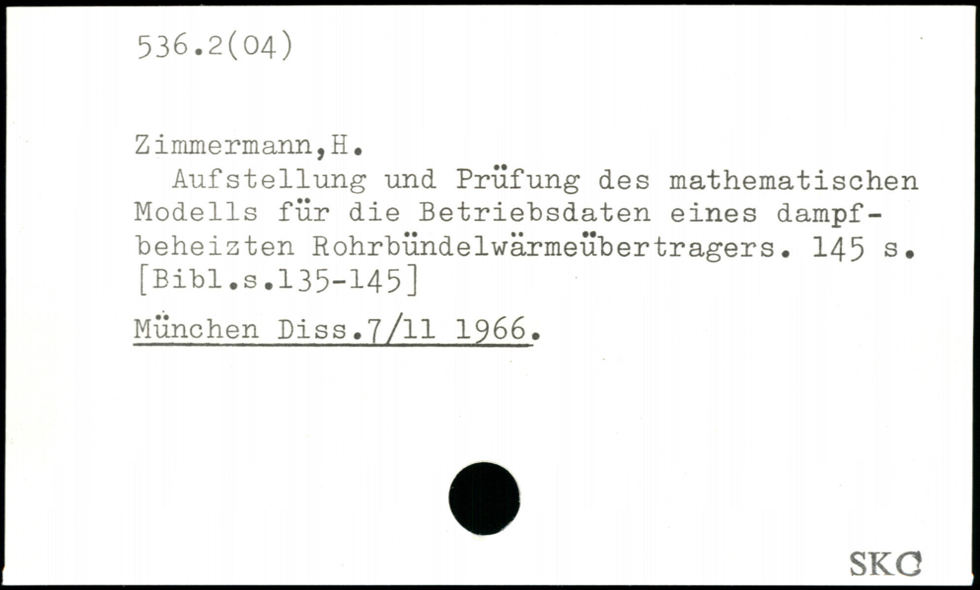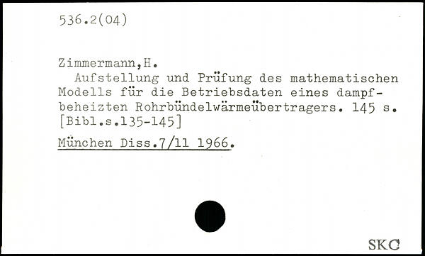 Z iminermann, H. Aufstellung und Prüfung des mathematischen Modells für die Betriebsdaten eines dampfbeheizten Rohrbündelwärmeübertragers.