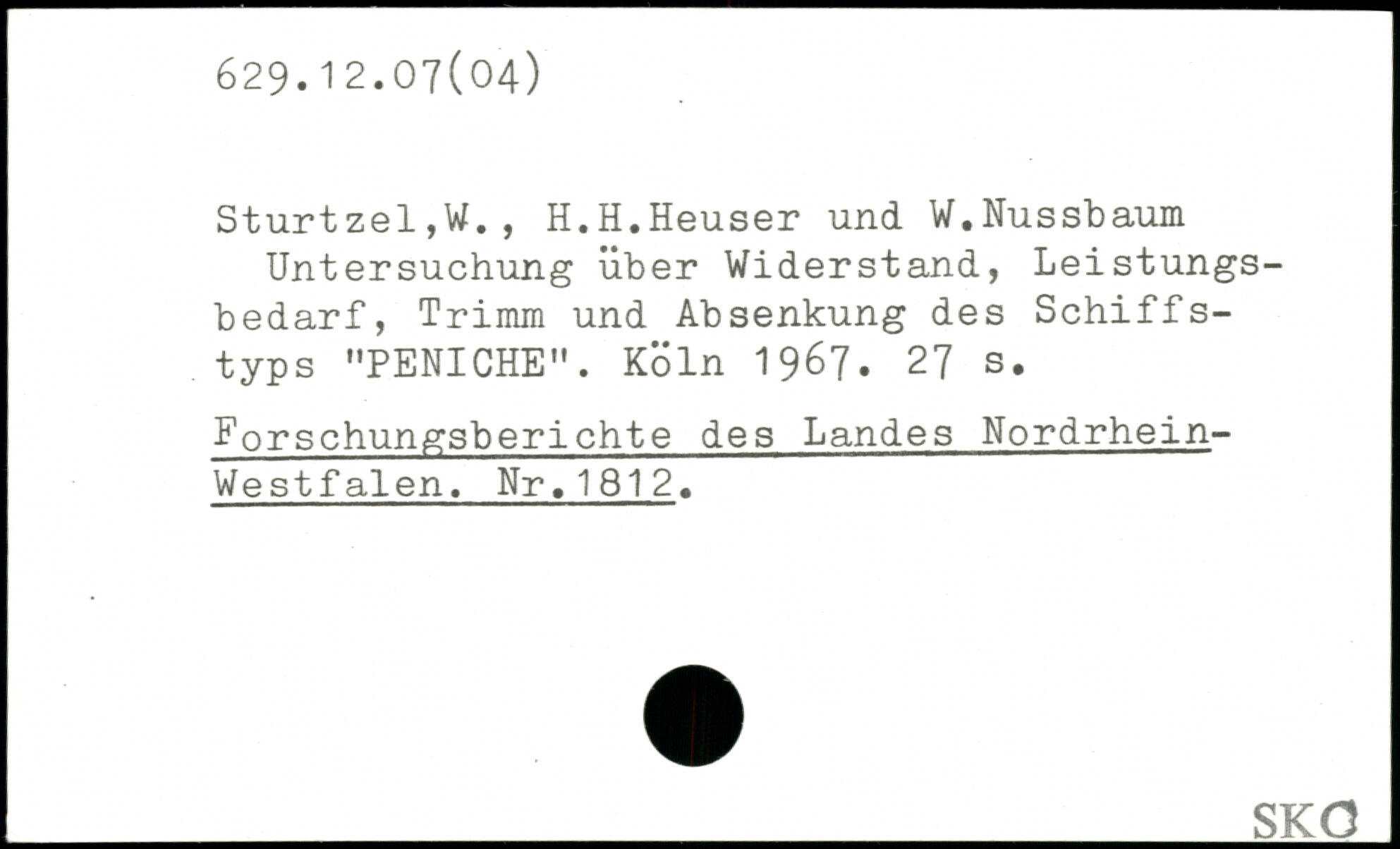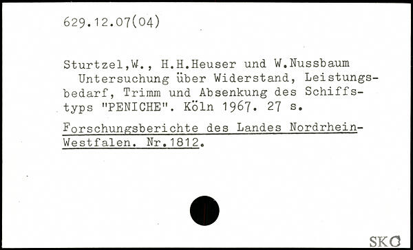 Sturtzel,W., H.H.Heuser und W.Nussbaum Untersuchung über Widerstand, Leistungsbedarf, Trimm und Absenkung des Schiffstyps "PENICHE".