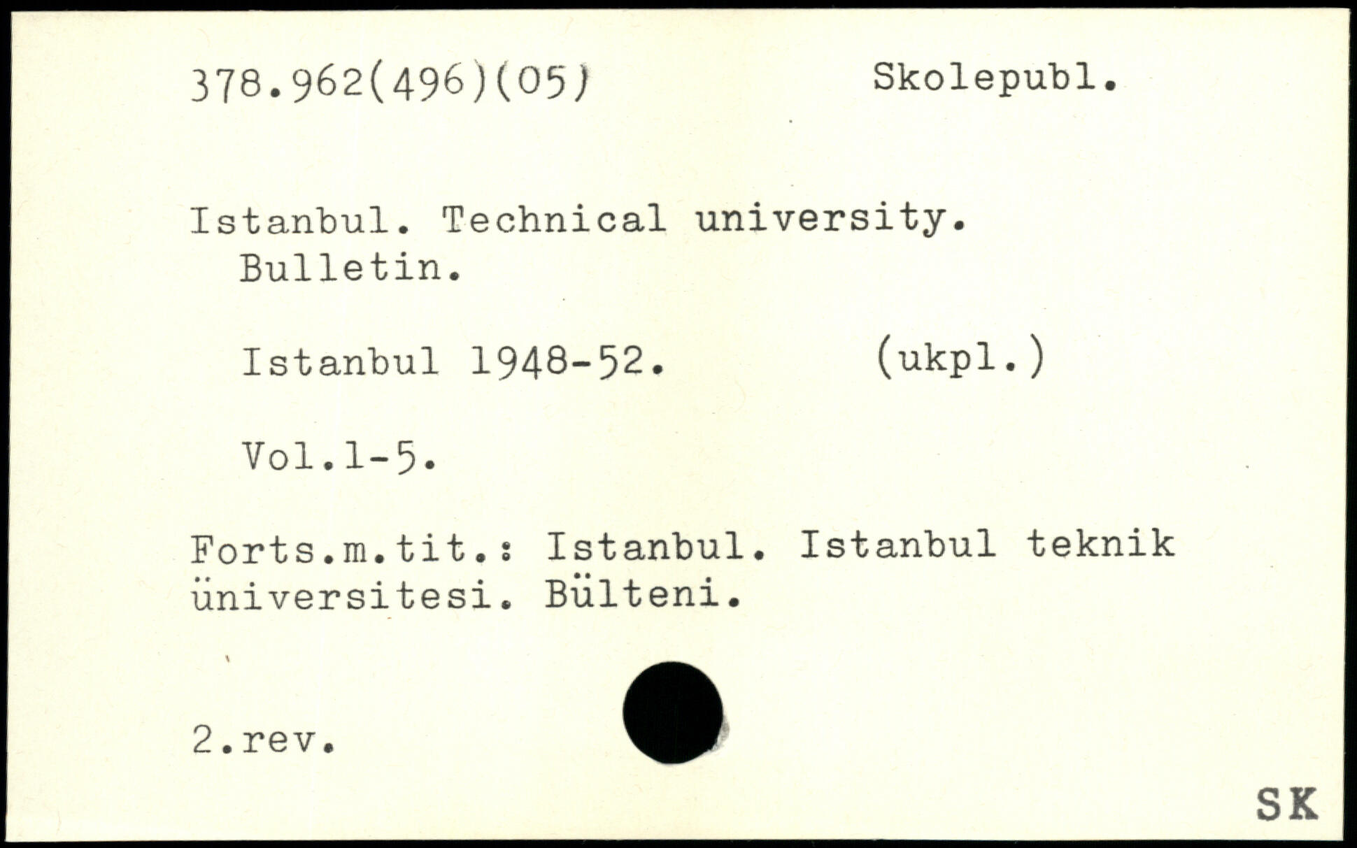 Istanbul. Technical university. Bulletin. Istanbul 1948-52. (ukpl.)