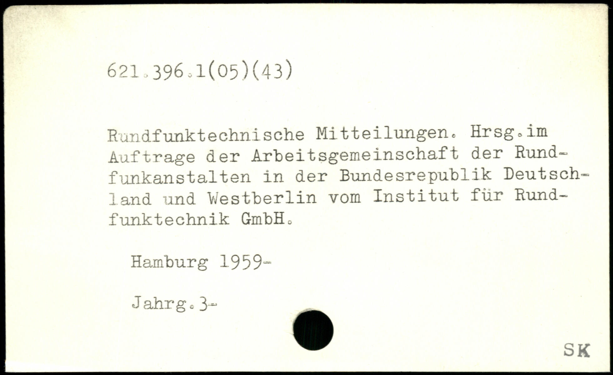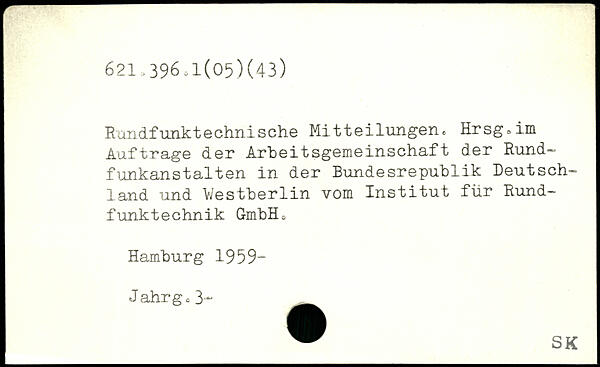 Rundfunktechnische Mitteilungen. Hrsg.im Aufträge der Arbeitsgemeinschaft der Rundfunkanstalten in der Bundesrepublik Deutschland und Yiestberlin vom Institut für Rundfunktechnik GmbHo