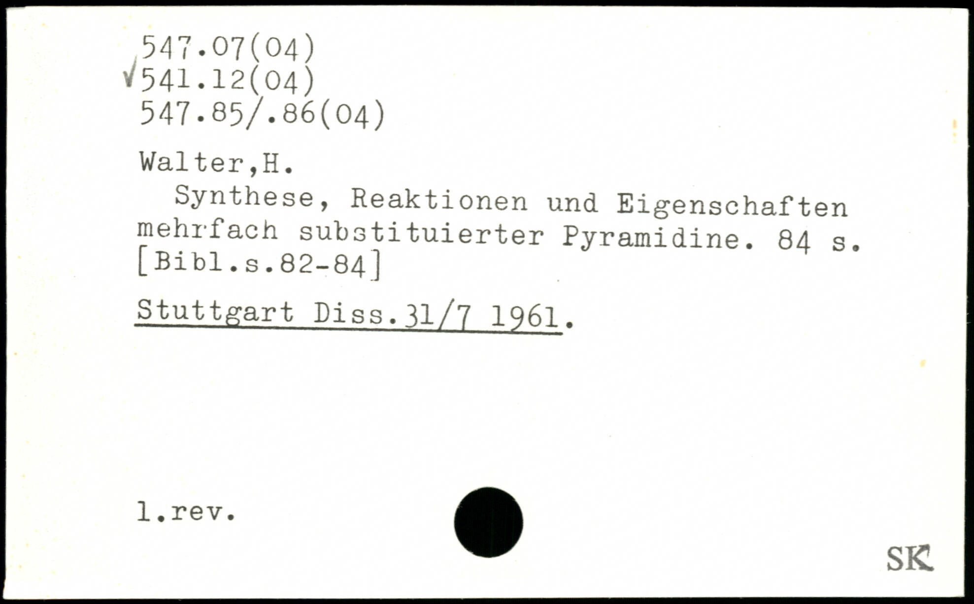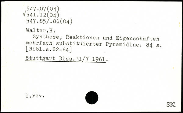 Synthese, Reaktionen und Eigenschaften mehrfach substituierter Pyramidine.