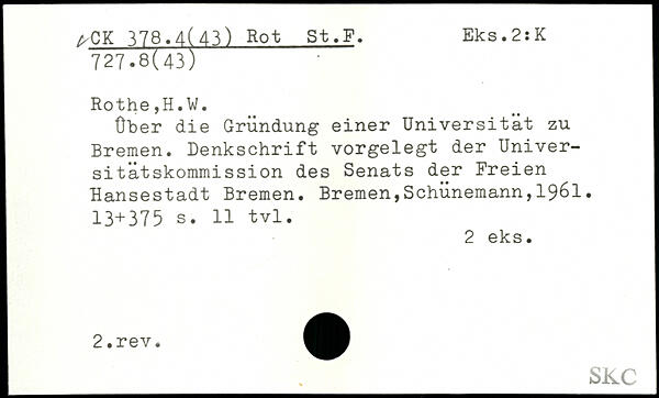 Über die Gründung einer Universität zu Bremen. Denkschrift vorgelegt der Universitätskommission des Senats der Freien Hansestadt Bremen.