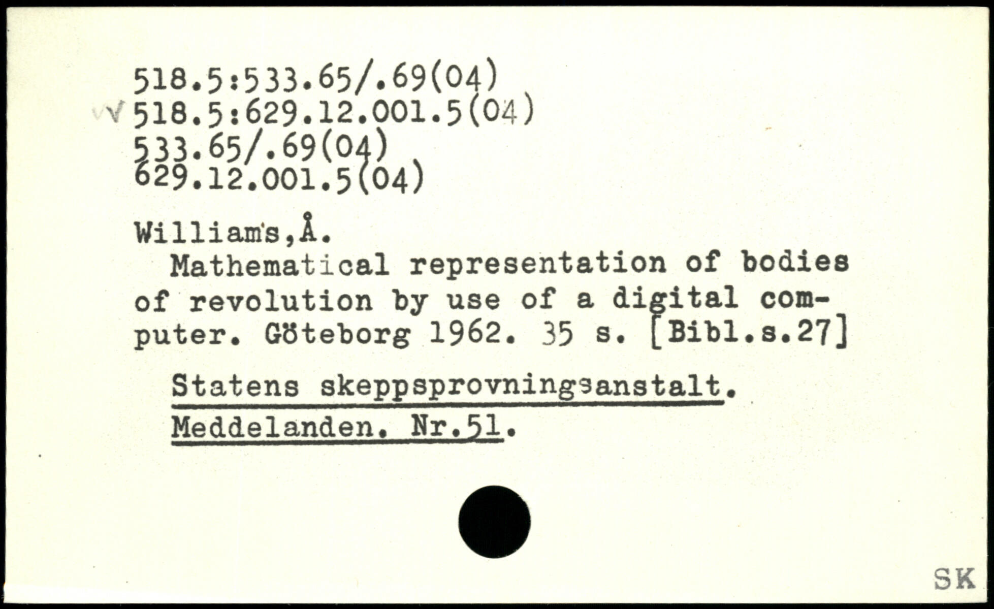 Mathematical representation of bodies of revolution by use of a digital computer. Göteborg 1962.