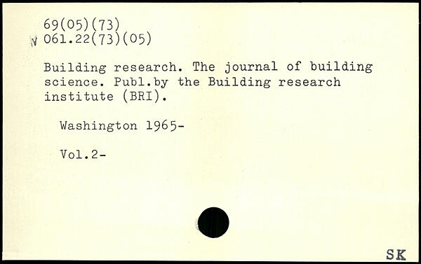Building research. The journal of building science.