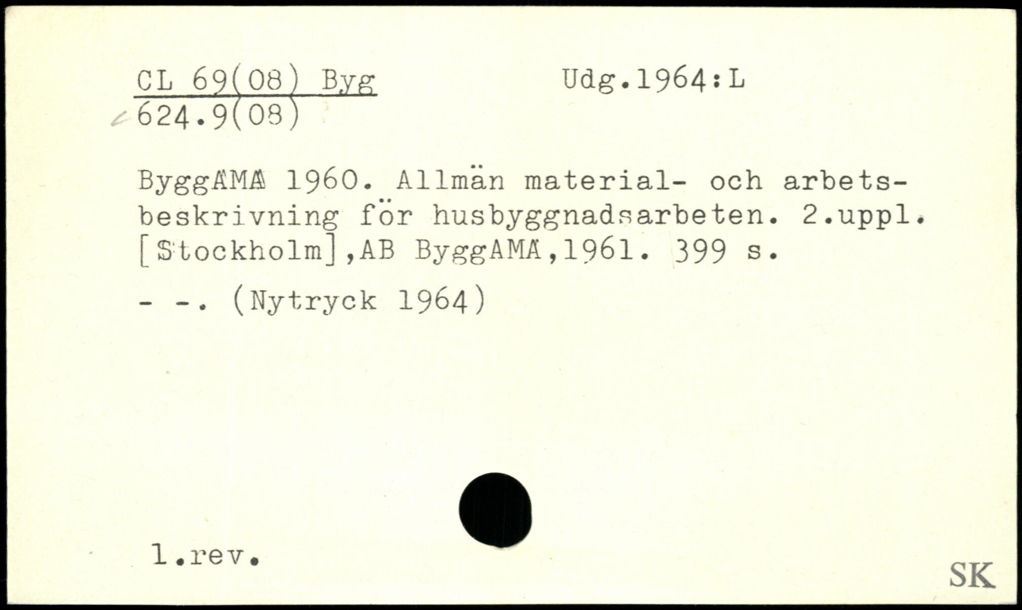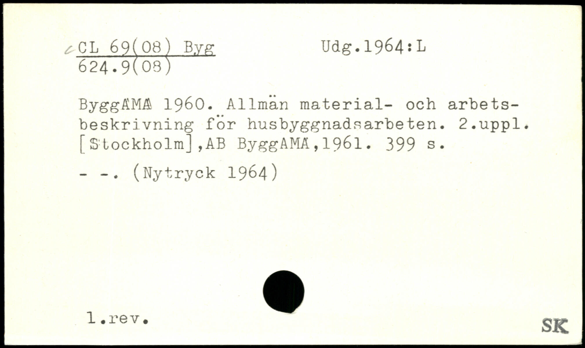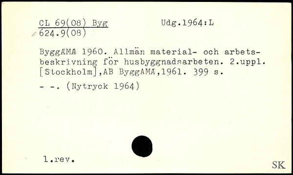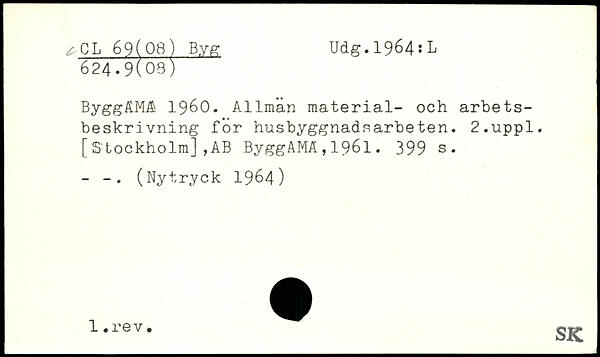 ByggÄMA 1960. Allman material- och arbetsbeskrivning for husbyggnadsarbeten.