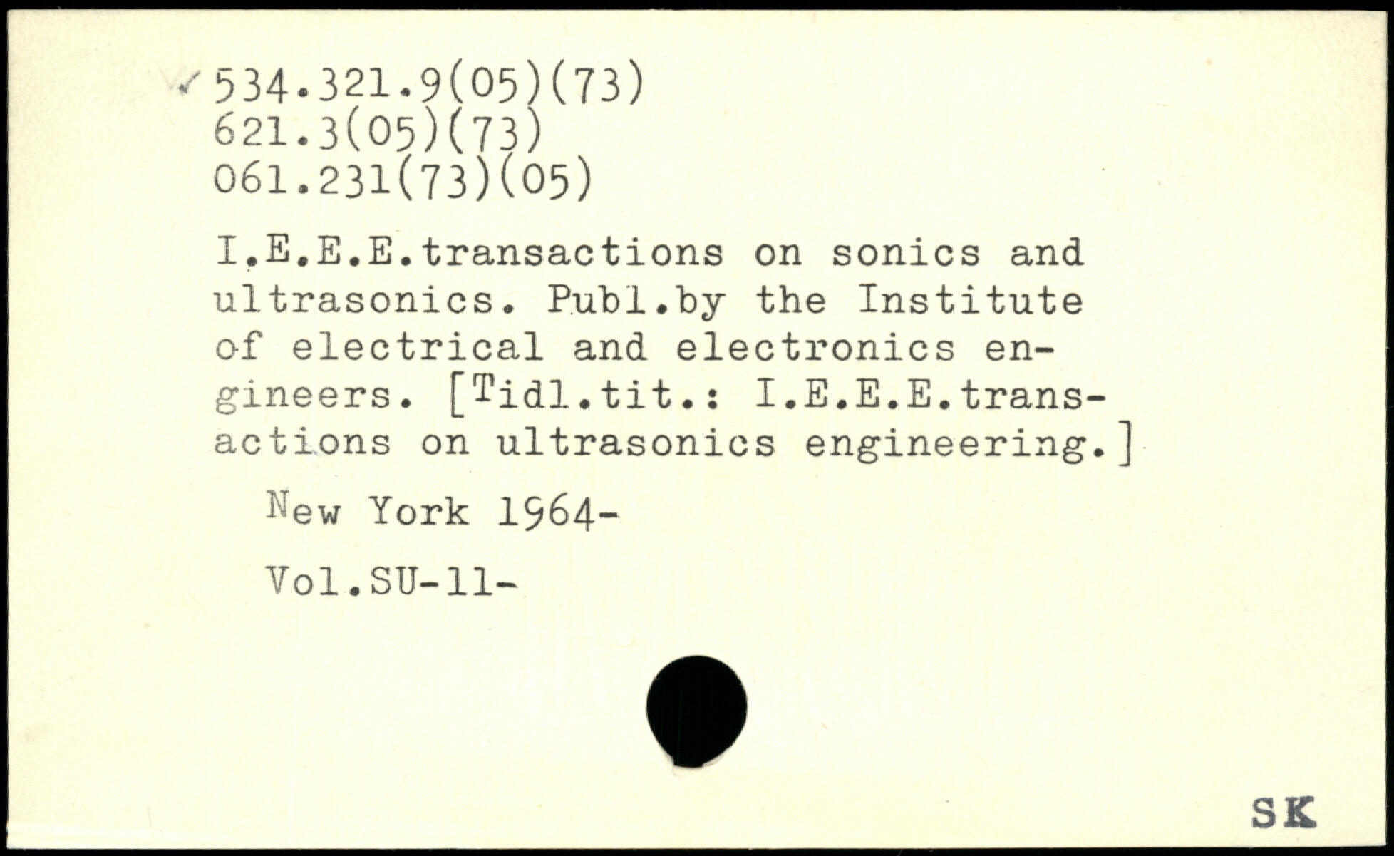 I.E.E.E.transactions on sonics and ultrasonics. P.ub 1. by the Institute of electrical and electronics engineers. [Tidl.tit.î I.E.E.E.transactions on ultrasonics engineering.]