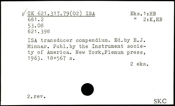 ISA transducer compendium. Ed.by E.J. Minnar.