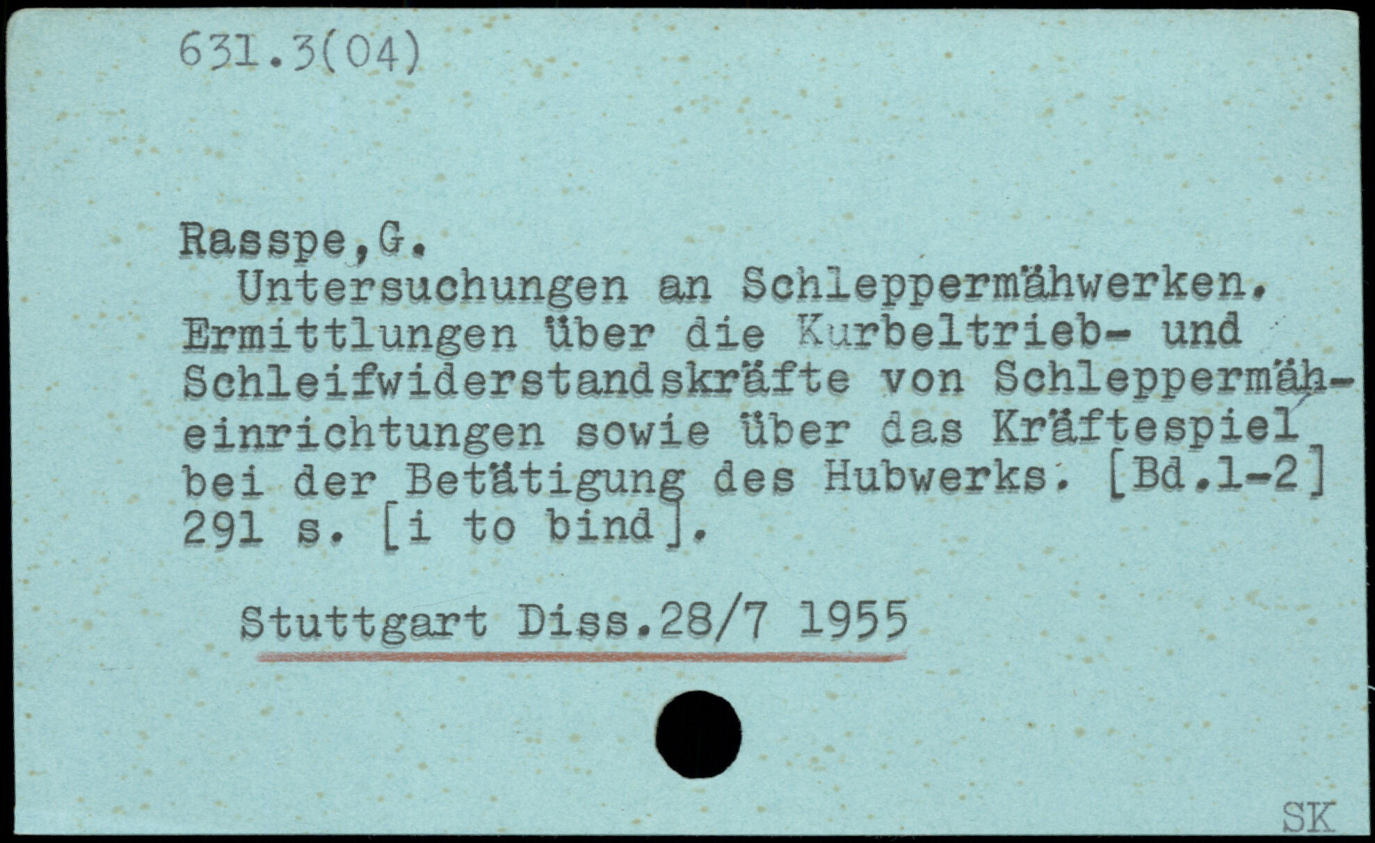 Untersuchungen an Schleppermdhwerken. Ermittlungen Uber die Kurbeltrieb- und Sehleifwiderstandskrdfte von Schlepperma^-einrichtungen sowie Uber das Kräftespiel bei der Betätigung des Hubwerks. [