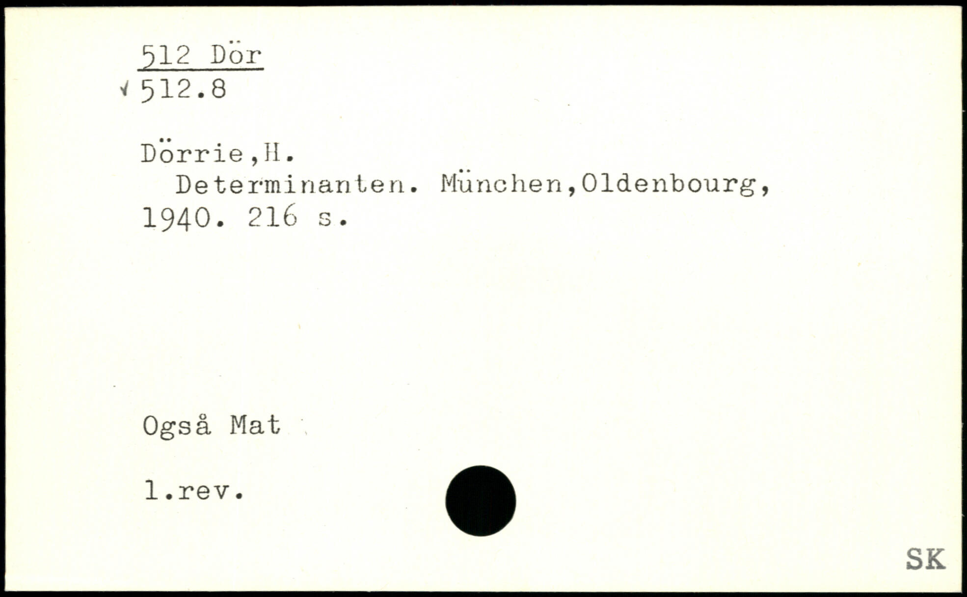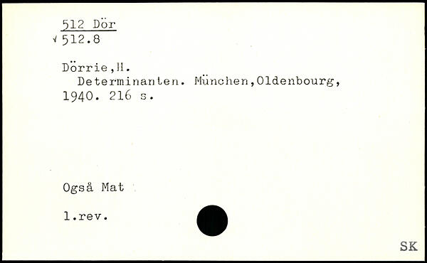 D e t e rm i n an t e n. Mu nc he n, 01 d e nb our g, 1940.