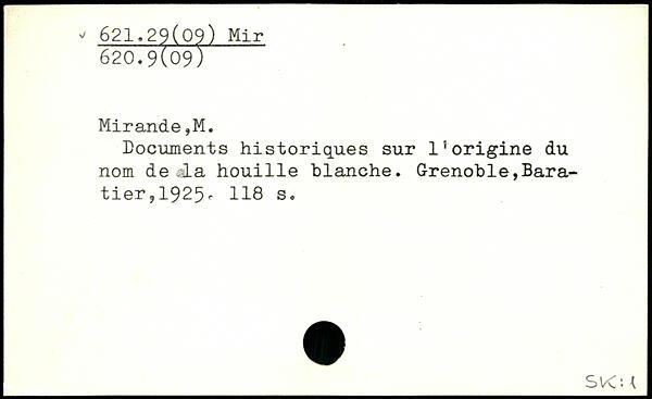 Documents historiques sur l'origine du nom de sla houille blanche. Grenoble,Bara- tier?1925'