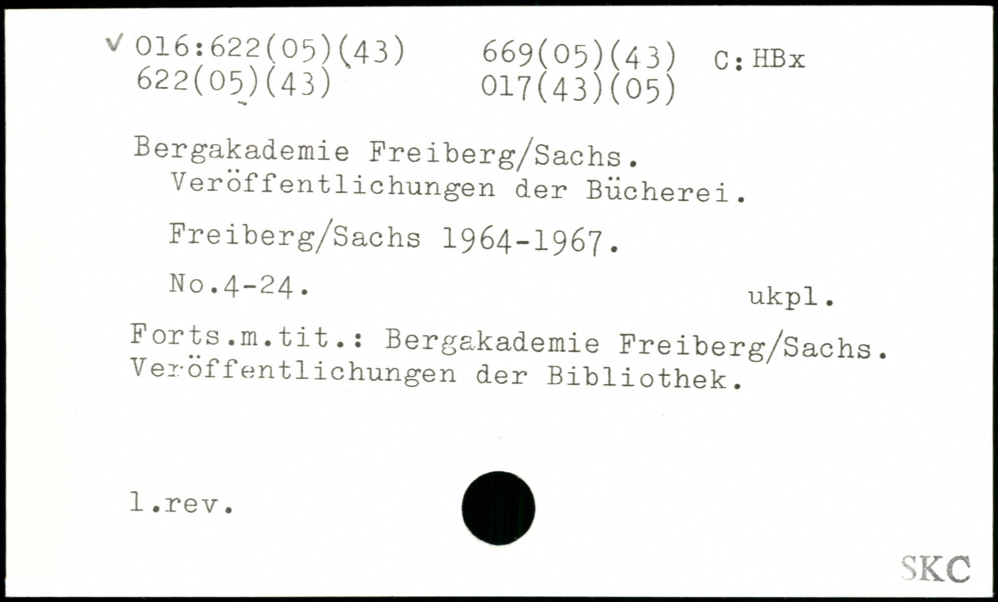 Bergakademie Freiberg/Sachs. Veroffentlichungen der Bücherei. Freiberg/Sachs 1964-1967. No.4-24. ukpl. Forts.m.tit.: Bergakademie Freiberg/Sachs. Veröffentlichungen der Bibliothek.