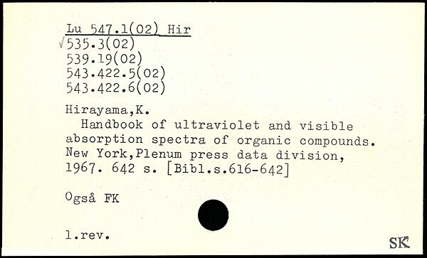 Handbook of ultraviolet and visible absorption spectra of organic compounds.