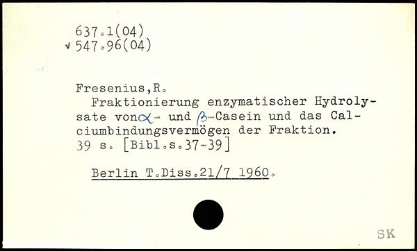 Fraktionierung enzymatischer Hydrolysate voncX^ und ß-Casein und das Calciumbindungsvermögen der Fraktion.