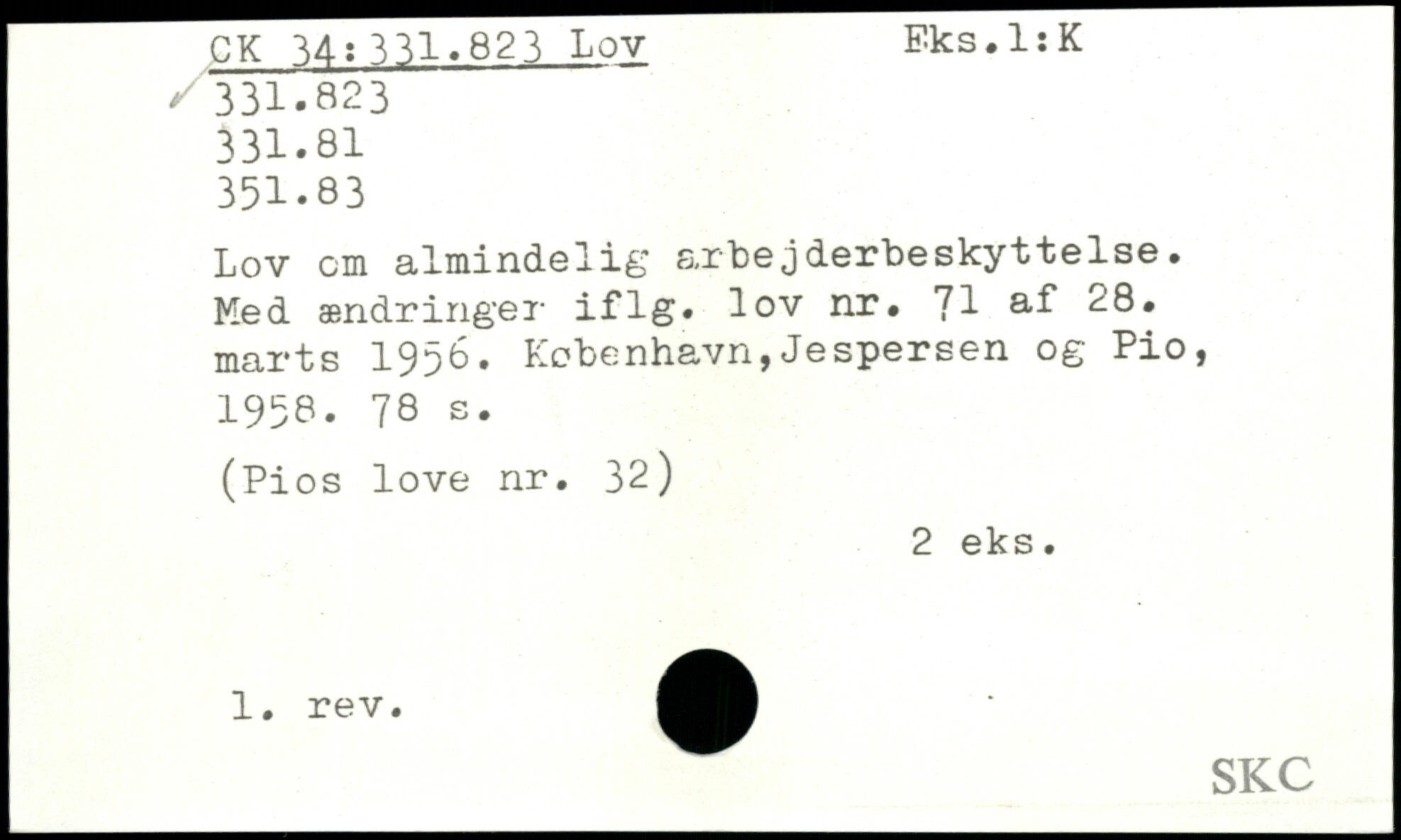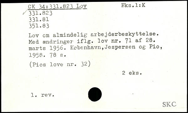 Lov cm almindelig arbejderbeskyttelse. Med ændringer iflg. lov nr. 71 al 28. marts 1956.