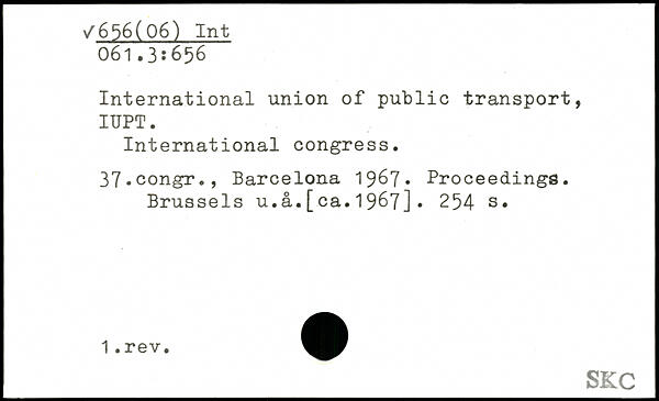 International union of public transport, IUPT. International congress. 37.congr., Barcelona 1967- Proceedings. Brussels u.a.[ca.1967].