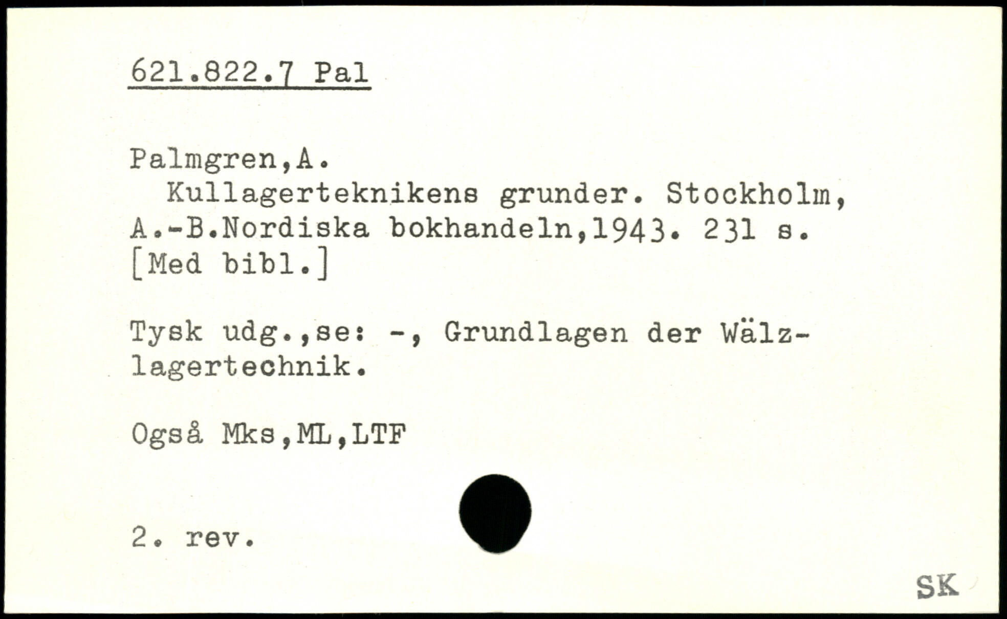 Kullagerteknikens grunder. Stockholm, A.-B.Nordiska bokhandeln,1943.
