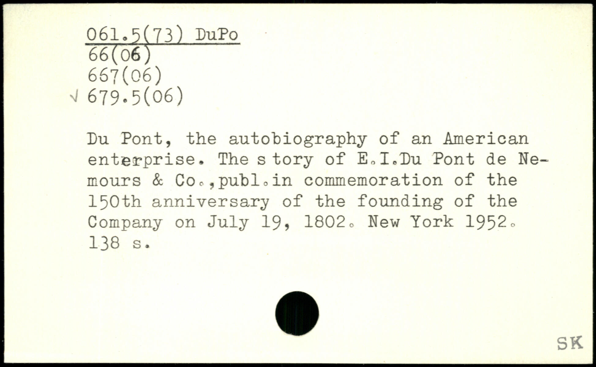 Pu Pont, the autobiography of an American enterprise. The story of Eol.Du Pont de Nemours & Coc,pubis in commemoration of the 150th anniversary of the founding of the Company on July I9, 1802 o