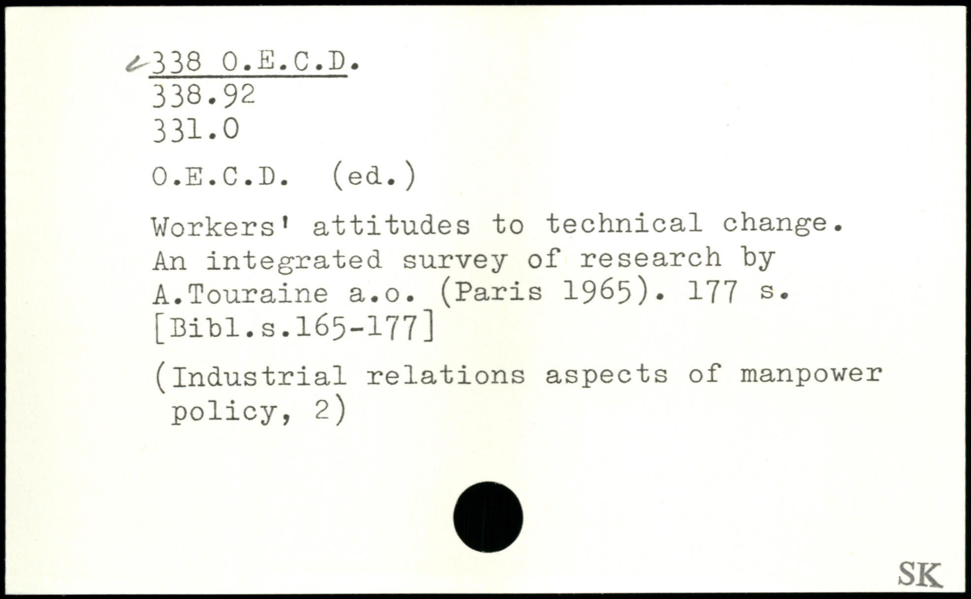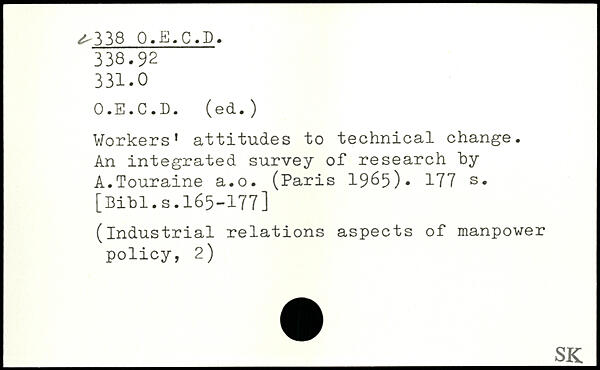 Workers’ attitudes to technical change. An integrated survey of research "by A.Touraine a.o. (